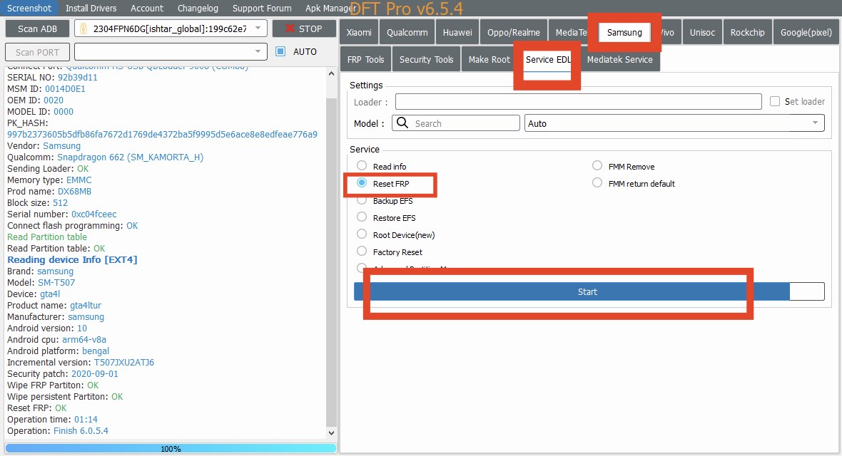 1) DFT Pro Samsung/Service EDL Bölümüne gir